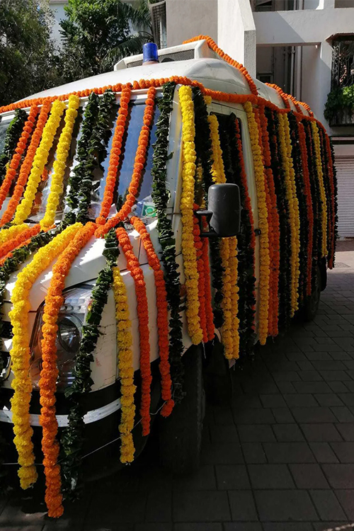 Garlands, floral frames, and decor for respectful homage and ceremonies.